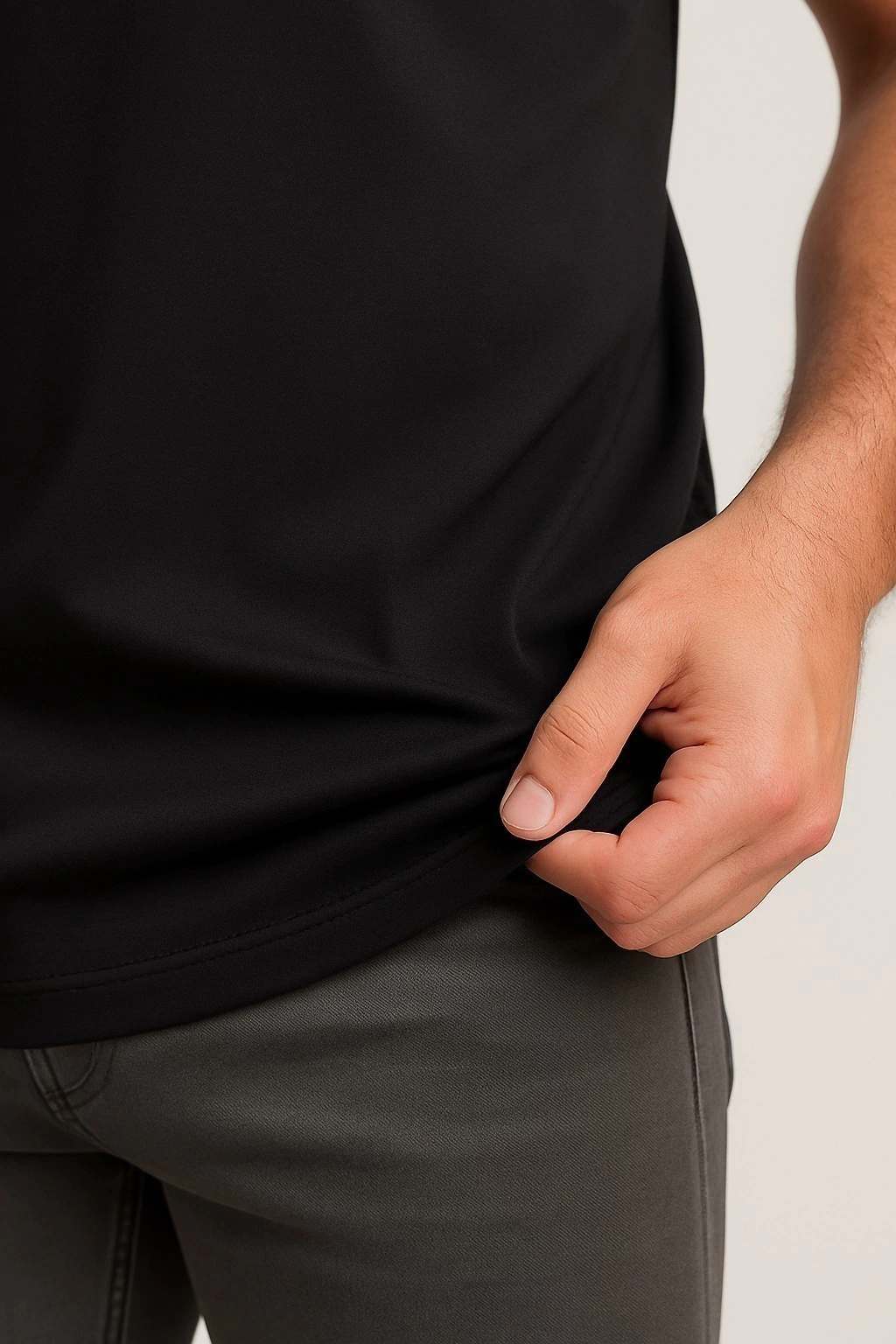 Remera de calce especial: ajustada en mangas y pecho, holgada en la zona de la panza.